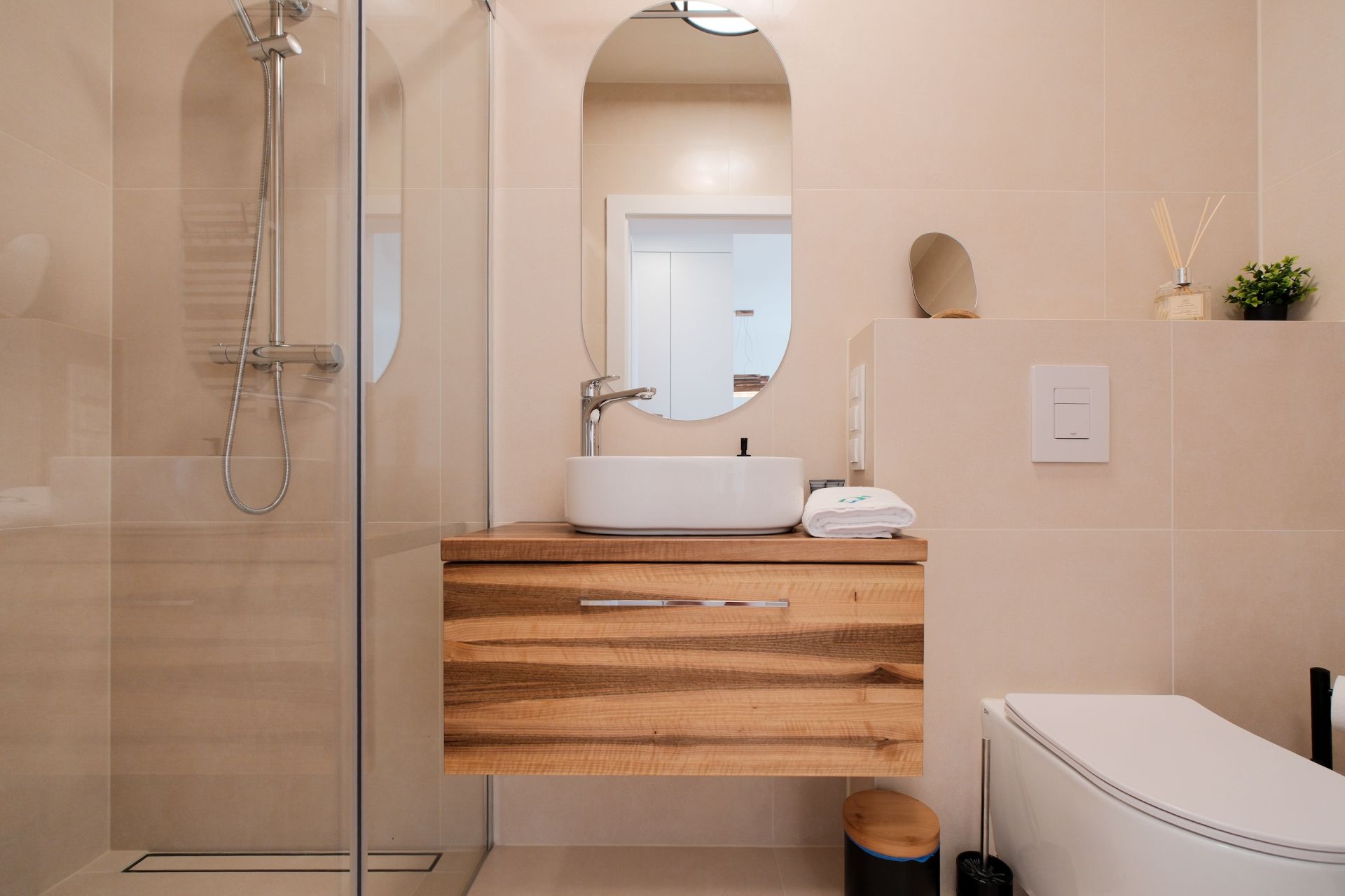 Łazienka – nowocześnie wykończona z prysznicem, suszarką do włosów,ręcznikami i WC. Pobyt umili zestaw mini kosmetyków!
