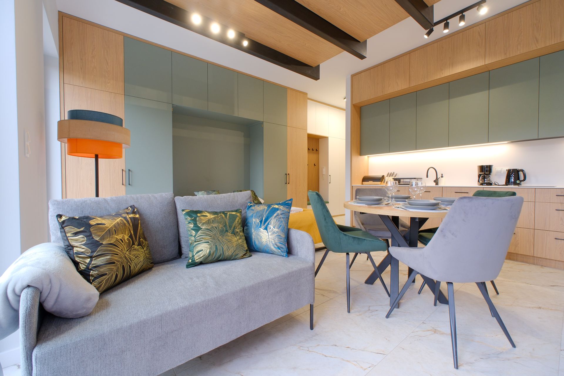 Wnętrza tworzone z pasją – ciepłe, nowoczesne, harmonijne. Detale, miękkie tkaniny i subtelne światło budują nastrój błogiego wypoczynku. W każdym akcencie czujesz, że to miejsce powstało po to, by dawać radość. Niezależna sypialnia, szybki internet światłowodowy, w pełni wyposażona kuchnia i funkcjonalna garderoba – wszystko, czego potrzebujesz, by poczuć się jak w domu… ale lepiej.