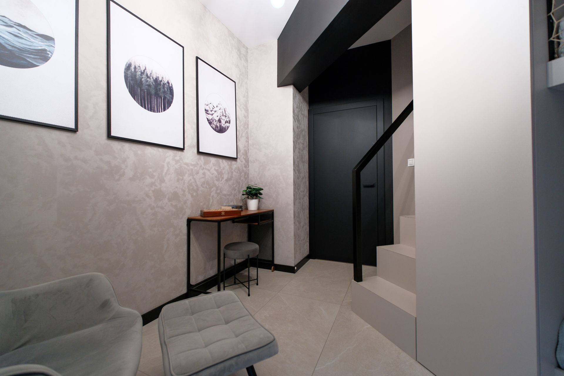 Dodatkowo w apartamencie znajduje się wygodna garderoba na okrycia wierzchnie z siedziskiem, pojemną szafą i szafką na buty.
